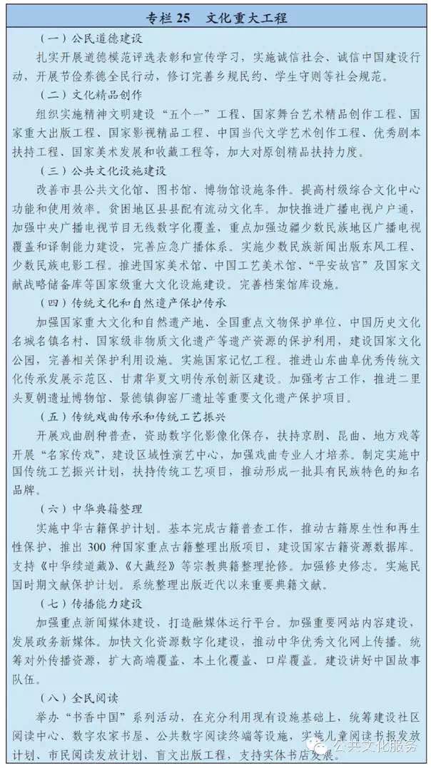 在国家十三五规划纲要第六十章第二节“构建现代公共文化服务体系”,提出未来5年公共文化重点推动以下8个方面。