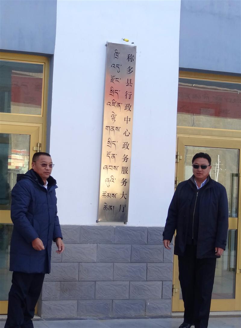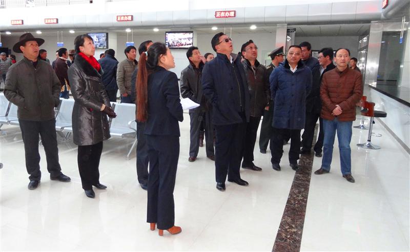 中共县委书记尼玛才仁同志、县政府县长艾尼阿更同志为行政中心政务服务大厅揭牌。