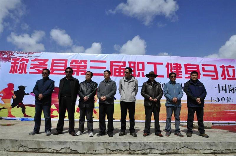 起跑仪式上县委副书记黄中锋同志讲话指出:“这次比赛是县上活跃职工文化生活的一次具体活动,也是称多文化体育活动的品牌工程,希望大家把坚韧不拔的体育精神带回到工作中去,以崭新的面貌,健康的体魄为新称多建设献计出力,建功立业。”