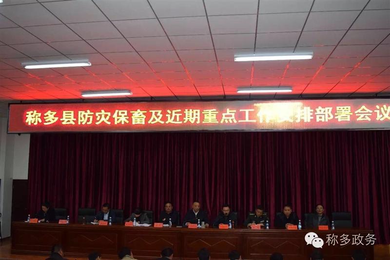 9月29日,称多县召开防灾保畜及重点工作安排部署会议,会议全面安排部署换届选举、防灾保畜等第四季度各项重点工作。县委副书记、县人民政府县长艾尼阿更、县委副书记丁增才仁、县政协主席边巴、县委组织部部长蒋树财、县总工会主席松拉卓玛、县人武部部长杨军、县委常委彭措尼玛、县人民政府副县长达哇措毛、县人民政府副县长丹正才仁出席会议;各乡镇党委、政府,县委、县政府各部门主要负责人参加了会议。县人民政府副县长达哇措毛传达了全州今冬明春防灾抗灾保畜工作会议精神,县委组织部部长蒋树财作了有关换届工作的讲话。会议由县委副书记丁增才仁主持。